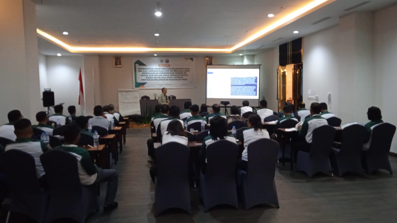 Narasumber dari Auditor Keuangan Negara Pusat memberikan wawasan mendalam tentang upaya mengantisipasi resiko salah saji atas laporan pertanggungjawaban keuangan desa dan strategi menghadapi pemeriksaan keuangan oleh APIP. Kegiatan ini dimulai pukul 09.00 WITA dan berakhir pukul 17.00 WITA, menggunakan metode ceramah, diskusi, dan praktek aplikasi, sehingga peserta mendapatkan pemahaman yang komprehensif dan praktis.